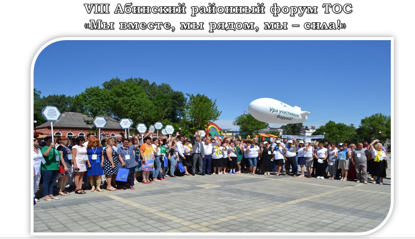 28 июня 2019 года состоялся VIII Абинский районный Форум территориального общественного самоуправления «Мы вместе, мы рядом, мы-сила!».