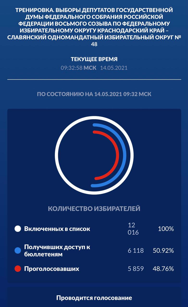 Тестовое голосование продлится до 20:00 14 мая 2021 года.