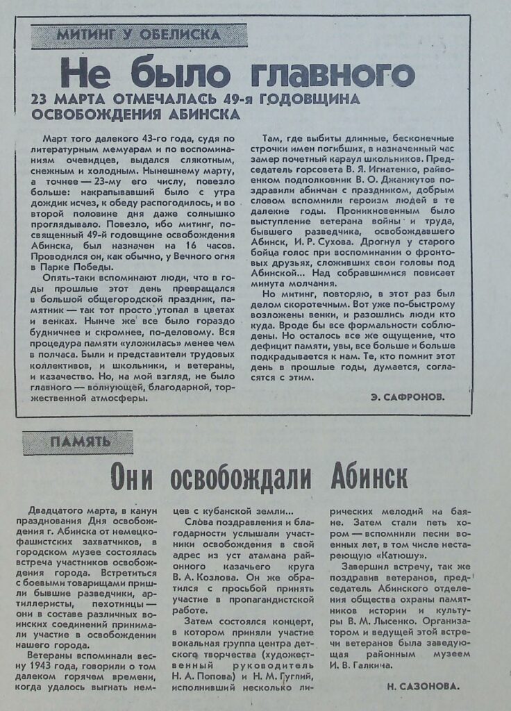 Они освобождали Абинск… 23 марта 1992 год…