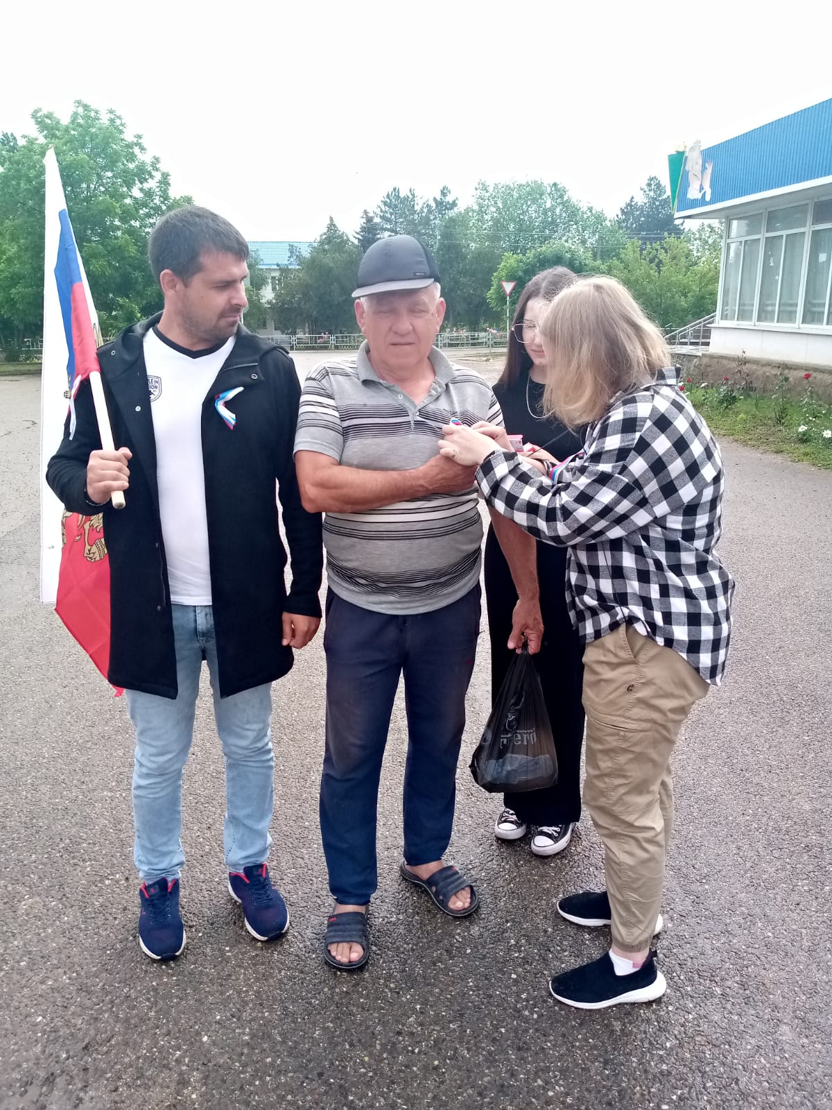 Молодой парламетарий Совета Светлогорского сельского поселения Владимир Кандыбко вместе с молодежным активом поздравили местных жителей с днем рождения страны и раздали ленточки триколор.