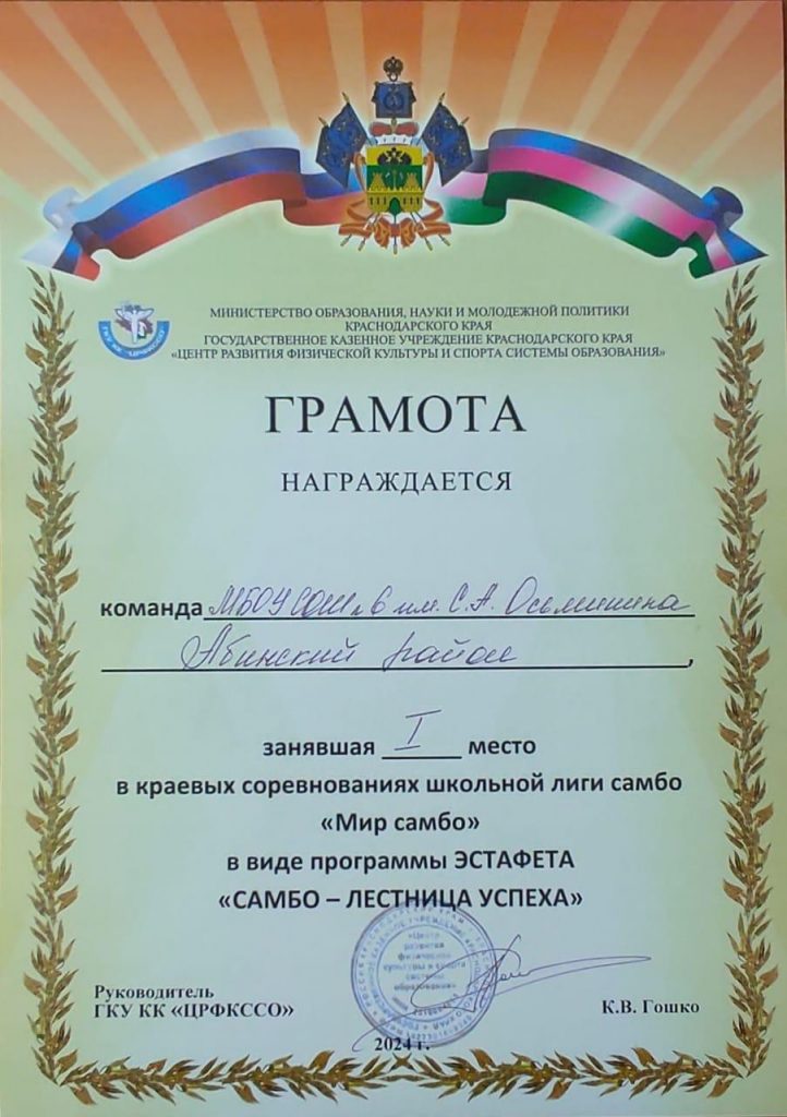 В фестивале приняли участие 10 команд общеобразовательных организаций Краснодарского края. Абинский район представляет команда школы 6 ст. Мингрельской, победитель муниципального этапа в виде программы эстафета «Самбо — лестница успеха» и прошедшая отбор на краевом уровне. Программа фестиваля была очень насыщенная и разнообразная. Участникам фестиваля необходимо было пройти за ограниченное время полосу препятствий, показать приемы самообороны без оружия, подготовить проектную работу «Роль личности в истории самбо» и показать технику самбо с танцевальными элементами «Демо самбо». По результатам фестиваля наша команда в общекомандном зачете на седьмом месте, а в виде программы эстафета «Самбо — лестница успеха» заняла I почетное место.