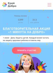 оказывает помощь лицам до 18 лет, проживающим на территории Краснодарского края. Из собранных средств мы оплачиваем проведение хирургических операций, курсы реабилитации и обследования, жизненно необходимые препараты, медицинские приборы, технические средства реабилитации, авиа и жд билеты к месту лечения ребенка. Оказать помощь и более подробно узнать о деятельности Благотворительного фонда «Край добра» можно по ссылке: https://kray-dobra.ru».