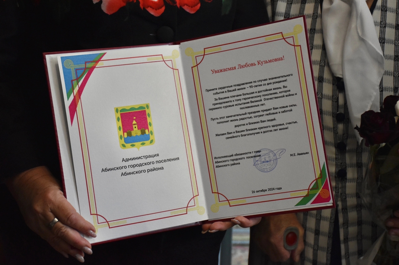90-летие со дня рождения отметила жительница Абинского городского поселения Любовь Кузьмовна Платонова.