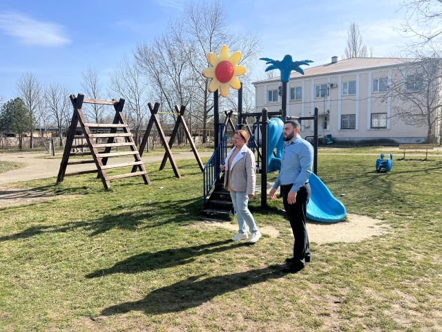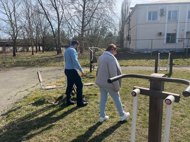 Артём Авакян молодой депутат Светлогорского сельского поселения и Николайчук Александра молодой депутат Холмского сельского поселения провели осмотр детских площадок на территории поселений
