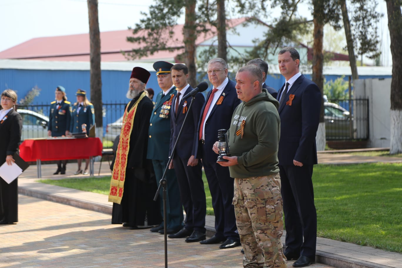Екатерина Нелень совместно с коллегами по Совету приняла участие в торжественном зажжении Вечного огня на мемориальном комплексе в поселке Ахтырском в честь воинов-пожарных, павших в годы Великой Отечественной войны и погибших на боевом посту при тушении пожаров. Мероприятие прошло в рамках Всероссийской акции «Храним огонь Победы».