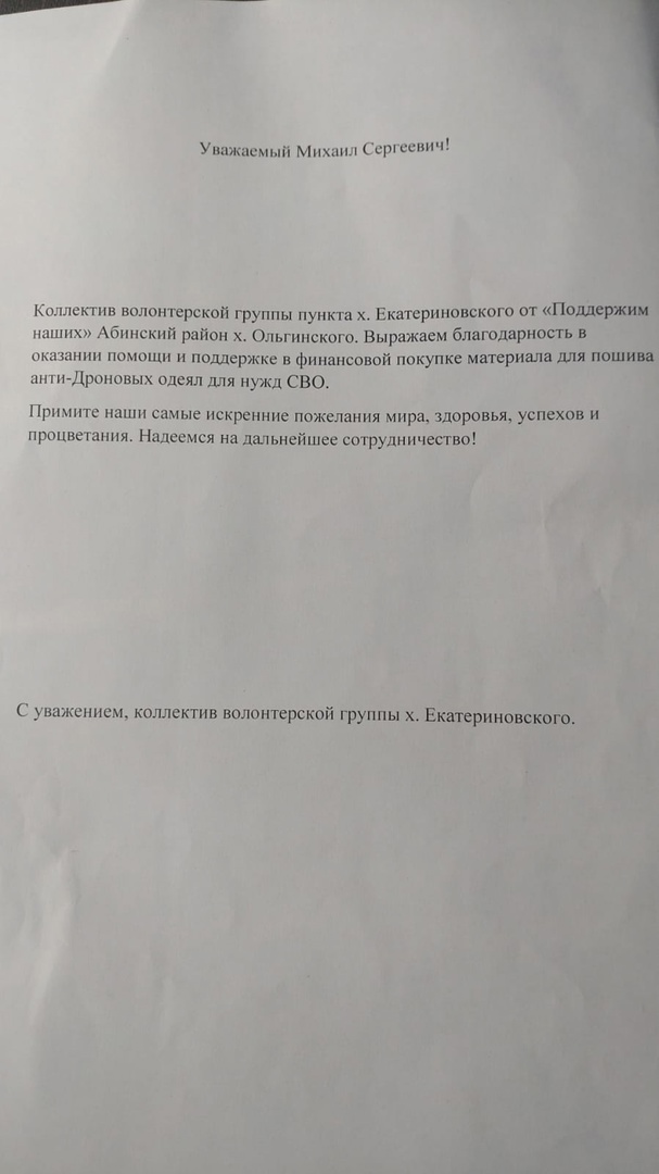Слова благодарности за поддержку бойцов СВО поступили в адрес молодого депутата Совета муниципального образования Абинский район Громова Михаила.
