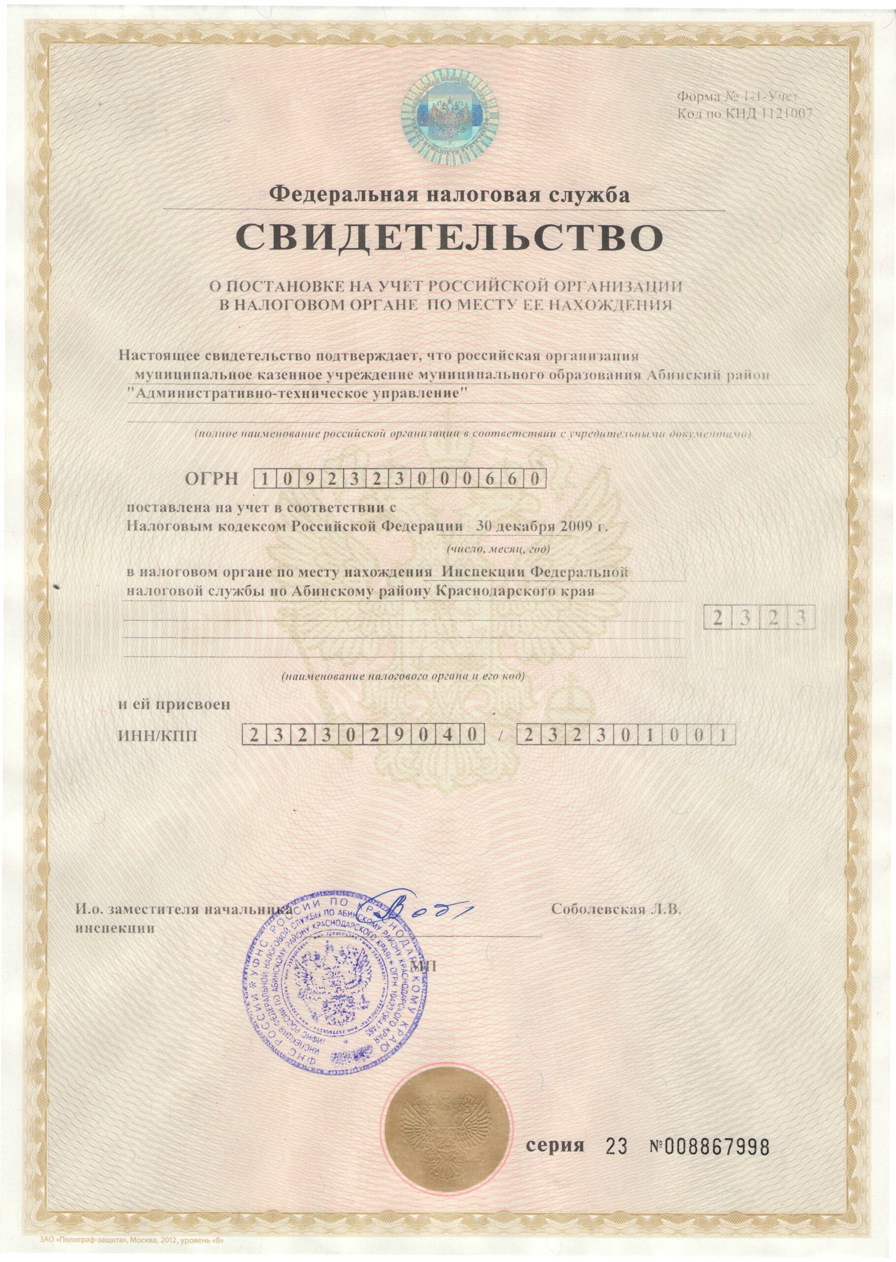 Свидетельство о государственной регистрации